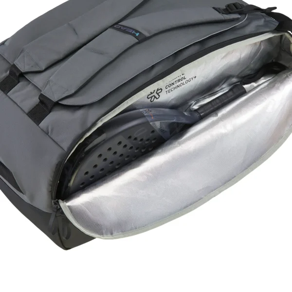 Este modelo cuenta con un compartimento principal extragrande, ideal para transportar tu equipo completo: desde varias palas hasta ropa, zapatillas y accesorios. Destaca por sus dos compartimentos laterales con tecnología CCT+ (Climate Control Technology Plus), que protege las palas de las variaciones de temperatura, manteniéndolas en condiciones óptimas durante más tiempo.