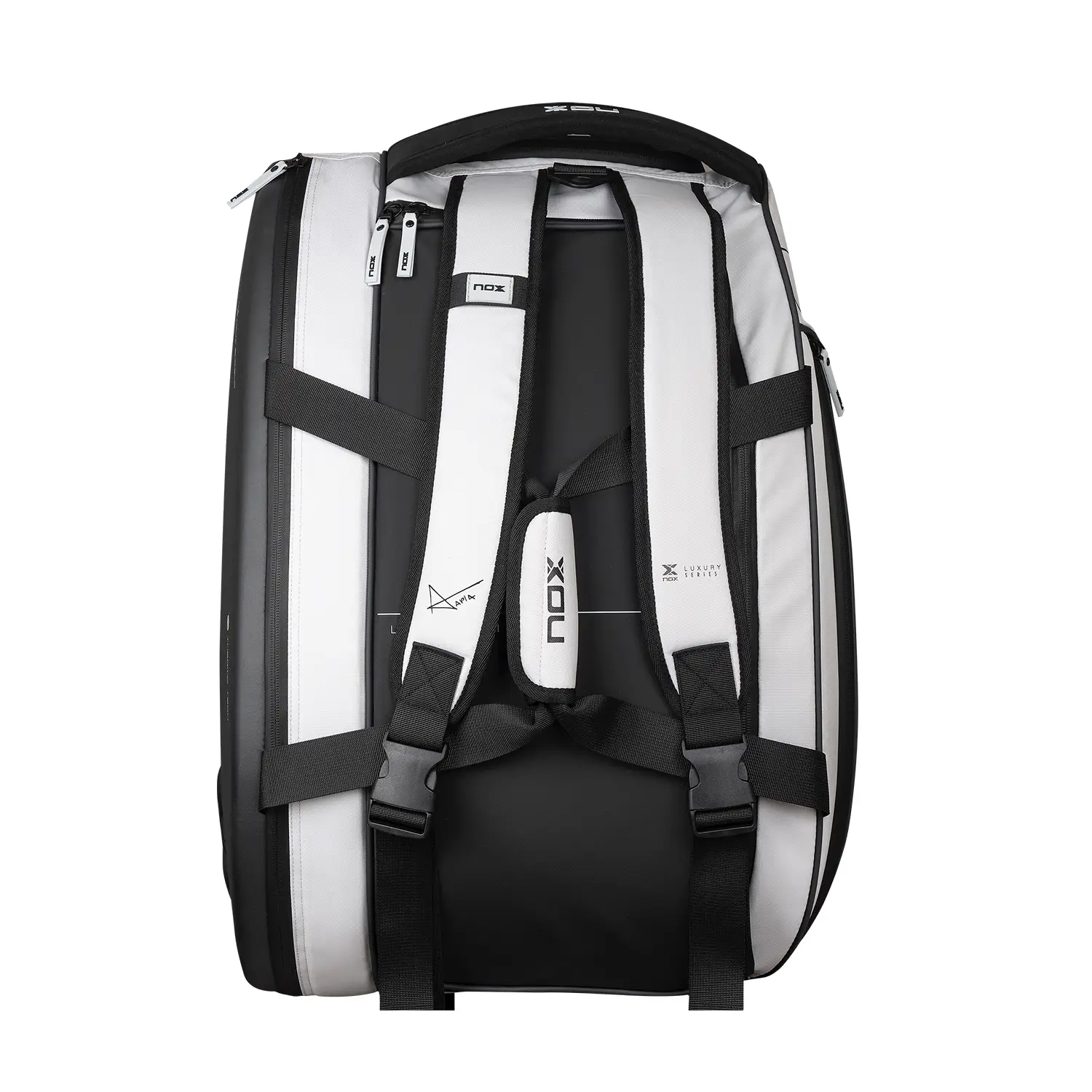 El Paletero NOX Luxury Master Series (BPLUXMASTER) es la combinación perfecta de elegancia, innovación y funcionalidad, diseñado para los jugadores de pádel más exigentes. Con compartimentos térmicos para proteger las palas, un espacio ventilado para calzado y múltiples bolsillos organizativos, este modelo ofrece una capacidad excepcional y un diseño exclusivo. Disponible en Muchopadelshop, tu tienda de confianza en productos de pádel premium.