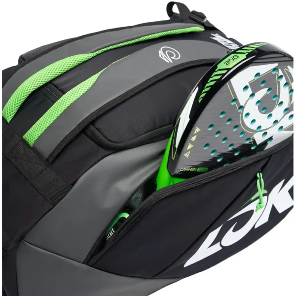 El Paletero Racket Bag Maxx (LOBG1PA2U0010) Black/Green ofrece una combinación perfecta de amplia capacidad, diseño ergonómico y materiales de alta resistencia. Con compartimentos específicos para palas, calzado y accesorios, garantiza una organización eficiente y protección óptima. Disponible en Muchopadelshop, la tienda de referencia en equipamiento de pádel de alta gama.