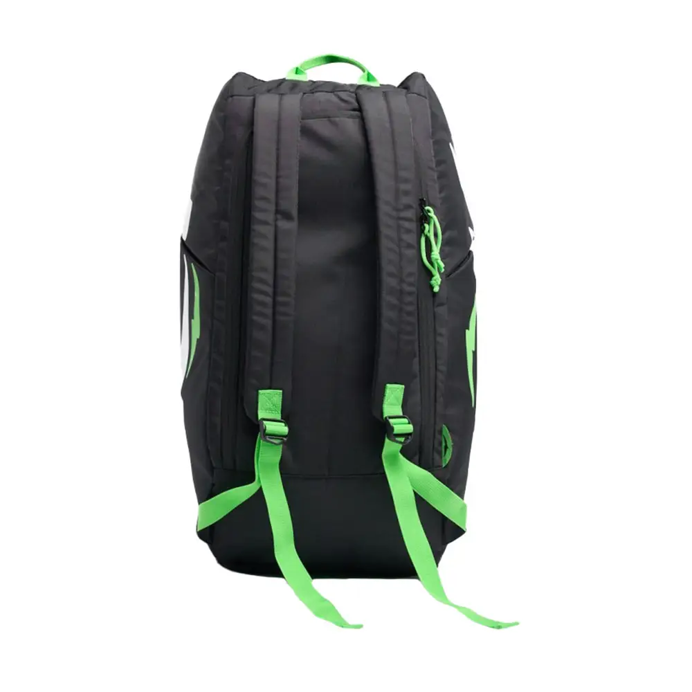 Este modelo está fabricado con materiales de alta calidad, lo que garantiza durabilidad y protección para tu equipamiento. Su amplio compartimento principal permite almacenar cómodamente ropa, toallas, pelotas y otros accesorios esenciales. Además, cuenta con dos compartimentos laterales acolchados específicos para proteger hasta dos palas de pádel, manteniéndolas seguras frente a golpes, arañazos o cambios bruscos de temperatura.