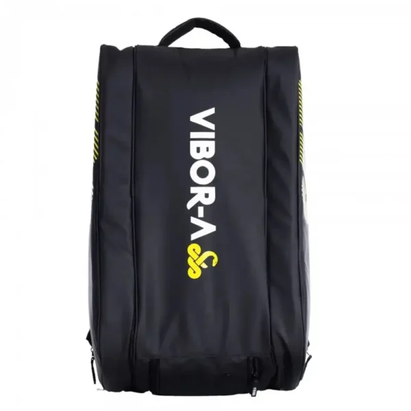 El Paletero Vibor-A Radical Negro/Amarillo, disponible en Muchopadelshop, es la elección perfecta para jugadores que buscan un paletero funcional, espacioso y con un diseño llamativo. Su combinación de negro con detalles en amarillo vibrante refleja un estilo deportivo y moderno, ideal para destacar en la pista.
