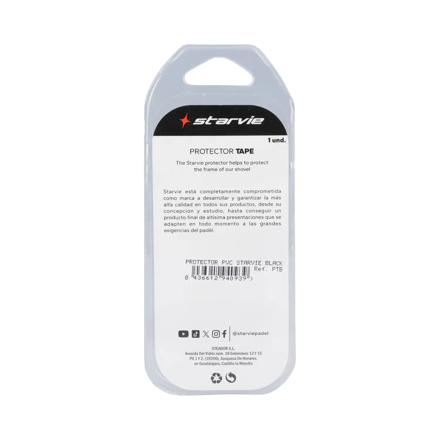 El Protector Starvie PVC Negro protege la pala contra golpes y rozaduras, alargando su vida útil sin afectar el rendimiento. Disponible en Muchopadelshop, combina resistencia, ligereza y un diseño discreto y elegante.