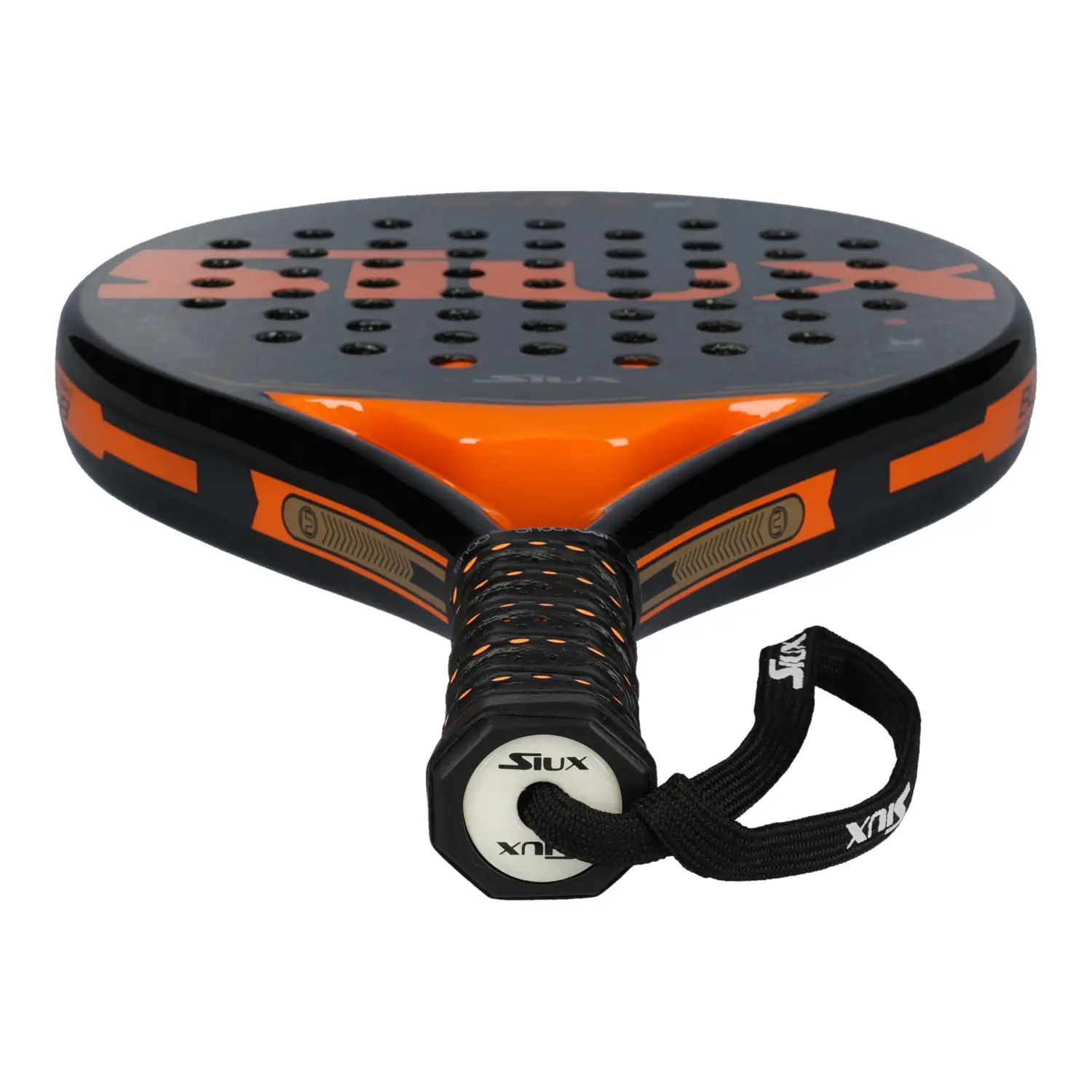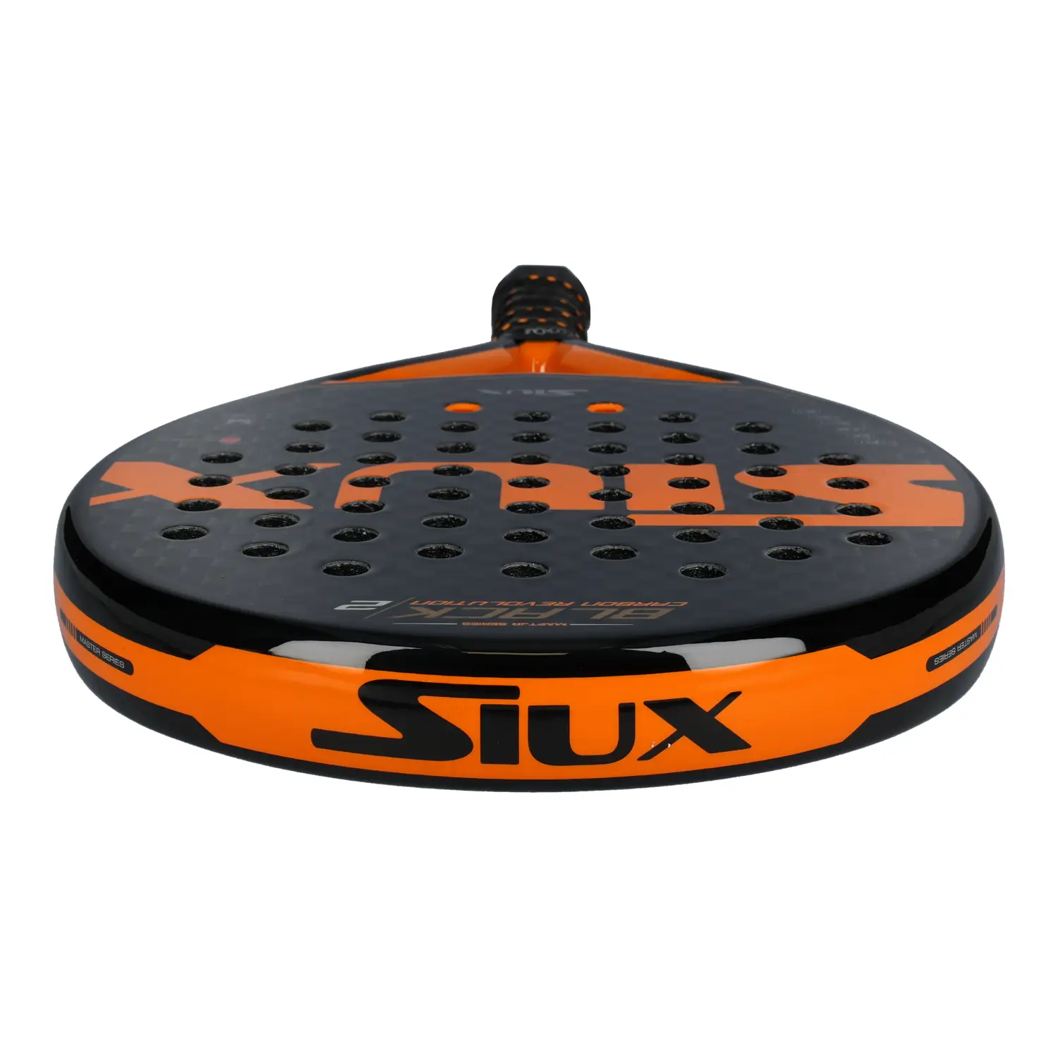 La SIUX BLACK CARBON REVOLUTION 2 NARANJA es una pala de alto rendimiento, diseñada para jugadores que buscan potencia, control y comodidad en cada golpe. Su estructura de carbono 3K en los planos y marco aporta una gran resistencia y durabilidad, permitiendo ejecutar golpes con máxima estabilidad y sin pérdidas de energía.