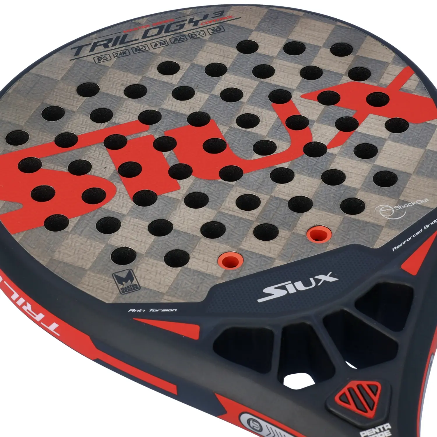 La Siux Trilogy 3 Control está cuidadosamente construida con los materiales más avanzados y tecnología de vanguardia para proporcionar un equilibrio excepcional en cada golpe. Su diseño innovador incorpora una combinación de carbono y otros materiales compuestos que garantizan una respuesta rápida y una sensación sólida en cada golpe. La disposición de los agujeros y la distribución del peso están finamente ajustadas para ofrecer un control supremo sobre la pelota, permitiendo al jugador colocar cada tiro con una precisión milimétrica.