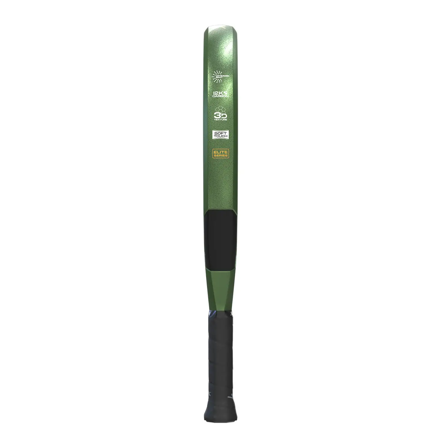 Construida con fibra de vidrio en las caras, proporciona un tacto más flexible y cómodo, ideal para evitar lesiones y mejorar la sensación de golpeo. Su núcleo de goma EVA Soft aporta una gran salida de bola y absorbe vibraciones, lo que la convierte en una pala muy cómoda incluso en partidos largos.
