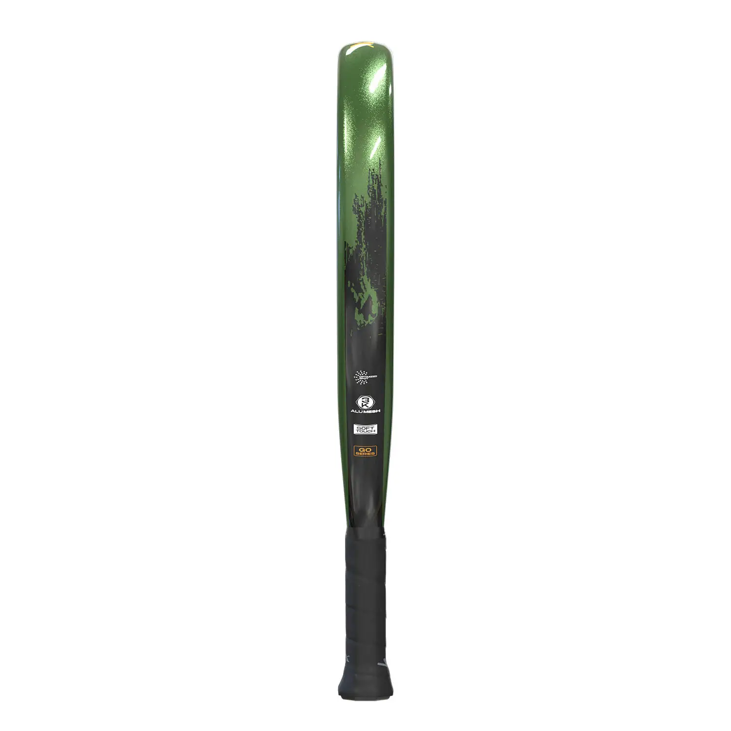 Su forma redonda y balance bajo garantizan un amplio punto dulce, lo que se traduce en golpes más precisos y seguros, reduciendo errores incluso en los intercambios más rápidos. Las caras están fabricadas en fibra de vidrio, que aporta un tacto más elástico y agradable, mientras que el núcleo EVA Soft ofrece una excelente salida de bola con gran absorción de vibraciones, cuidando las articulaciones.
