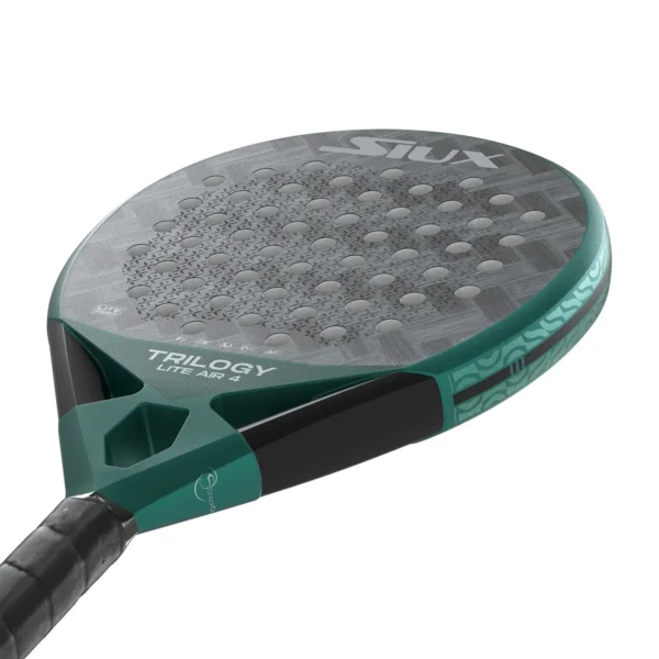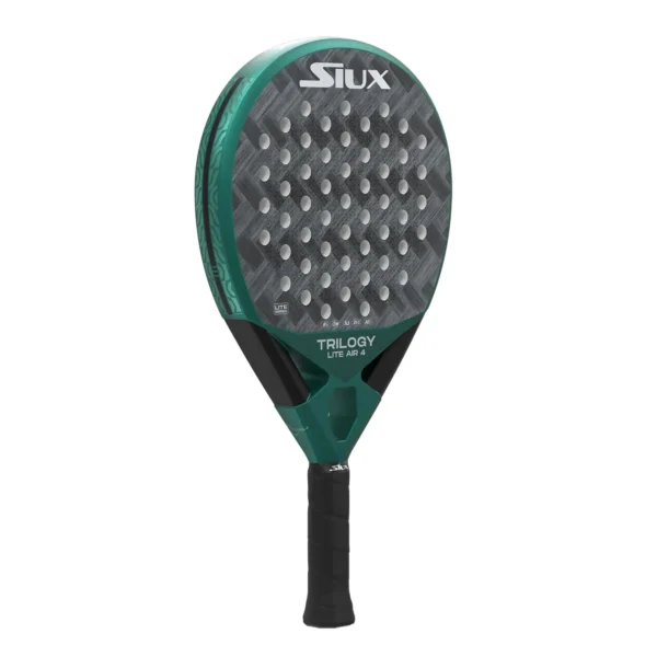 La Siux Trilogy Lite Air 4 destaca por su construcción innovadora y materiales de alta calidad que la hacen excepcionalmente ligera y maniobrable sin comprometer su resistencia. Su formato redondo y balance medio te brindan una sensación de juego óptima, permitiéndote ejecutar cada golpe con precisión milimétrica.