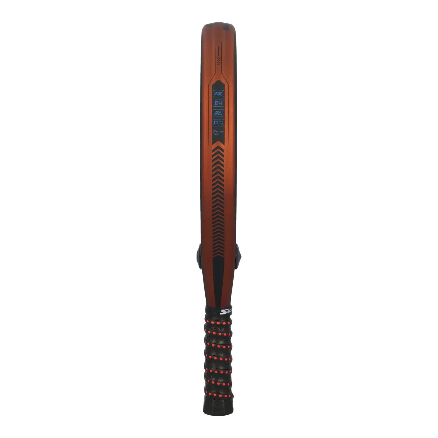 Otro de sus puntos fuertes es su sistema antivibración, ideal para evitar lesiones en el brazo y mejorar la sensación de golpeo. Su diseño moderno y agresivo refuerza la esencia de la serie Ultra de Siux, una de las más valoradas en el circuito profesional.