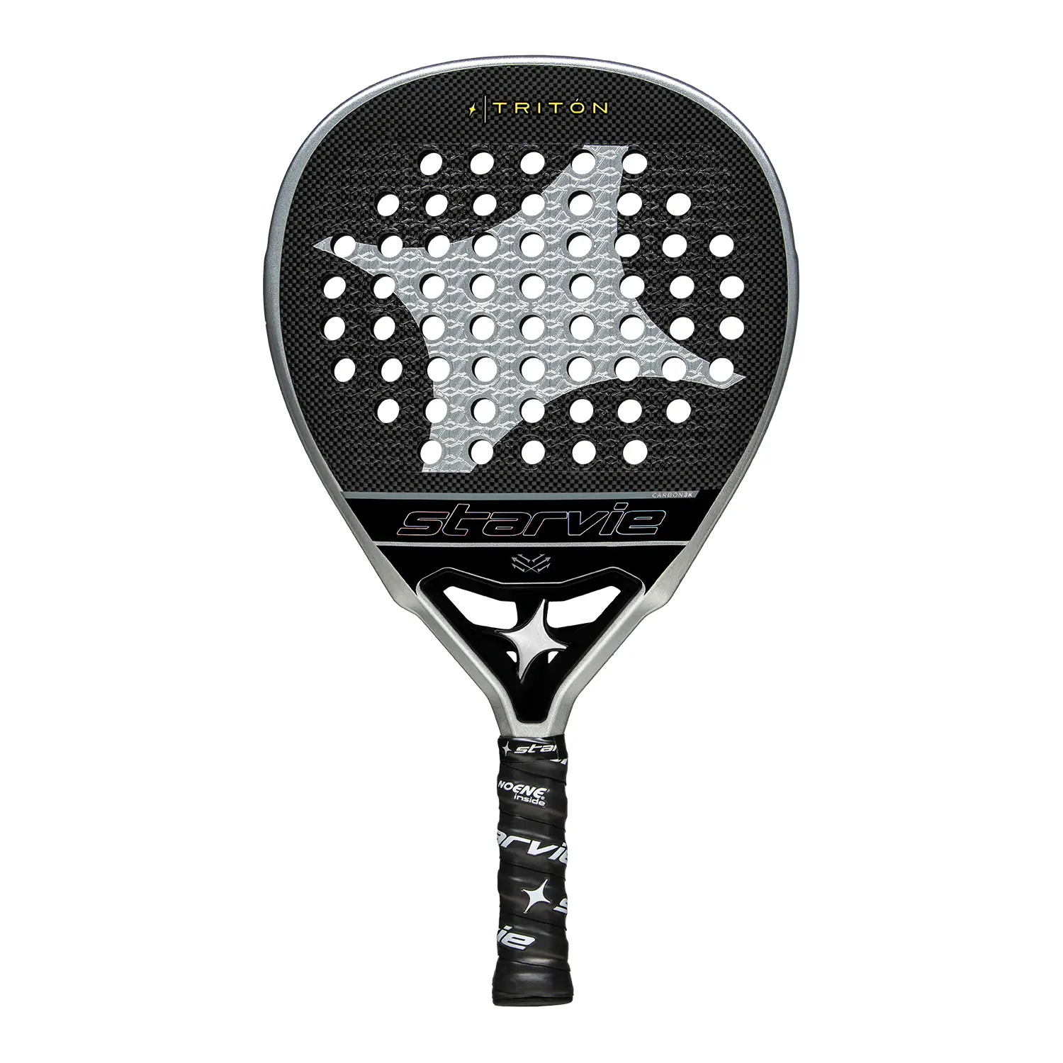 La STAR VIE TRITÓN 2025 es una pala de potencia diseñada para jugadores avanzados y profesionales que buscan un golpeo agresivo sin perder el control. Su formato lágrima y balance alto generan una gran salida de bola y potencia en los remates. Fabricada con carbono 3K en los planos y un núcleo de EVA Soft, proporciona un tacto firme con excelente absorción de vibraciones. Su rugosidad en la superficie mejora los efectos y el control en cada golpe. Disponible en MuchoPadelShop, la pala ideal para dominar la pista con potencia y precisión.
