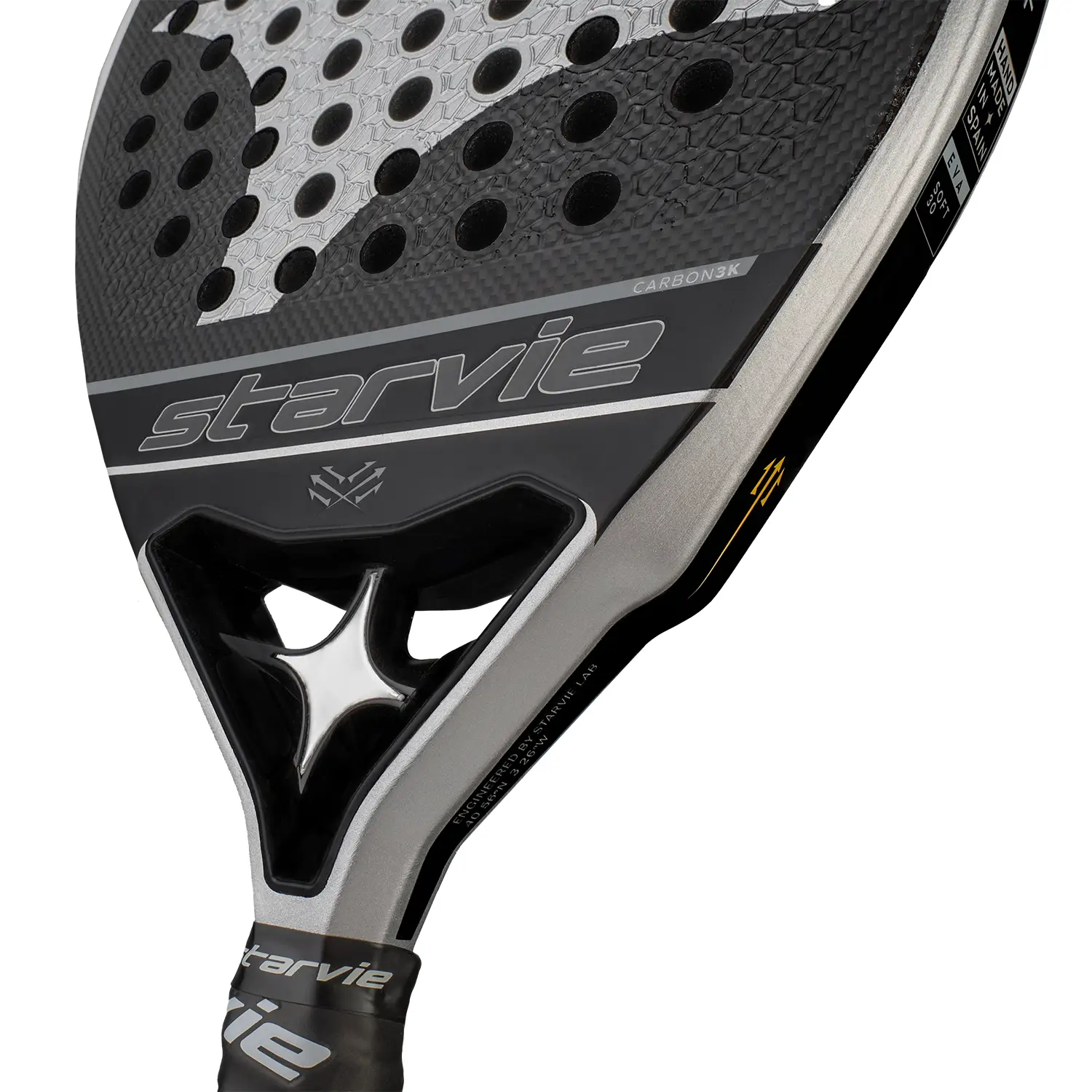 Construida con carbono 3K en los planos, la Tritón 2025 ofrece una estructura firme y resistente, proporcionando una mayor durabilidad y una sensación de golpeo sólida. Su núcleo de EVA Soft optimiza el confort, absorbiendo vibraciones y mejorando la sensación de control en cada impacto.