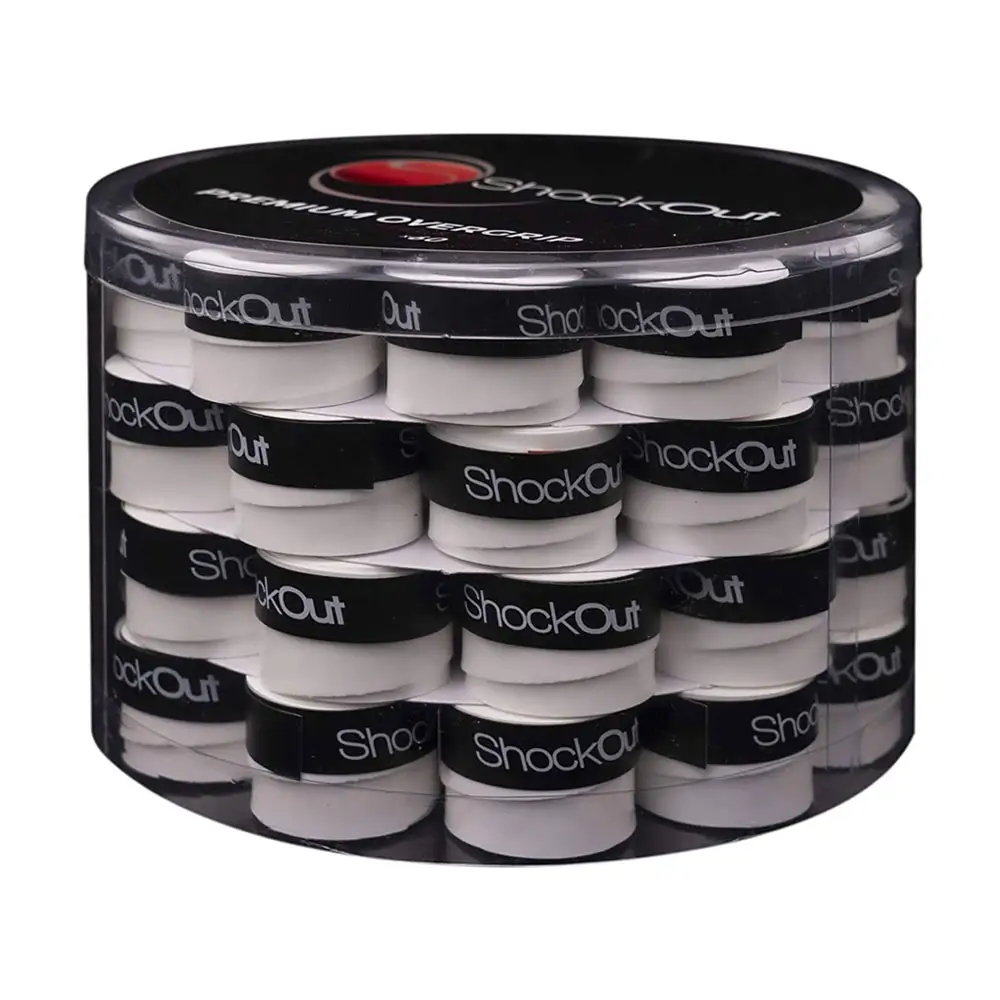 Descubre el Tambor 60 Overgrips Premium Lisos Blanco Negro en Muchopadelshop. Mejora tu agarre y control en la pista con estos overgrips de calidad premium. ¡Consíguelos ahora!